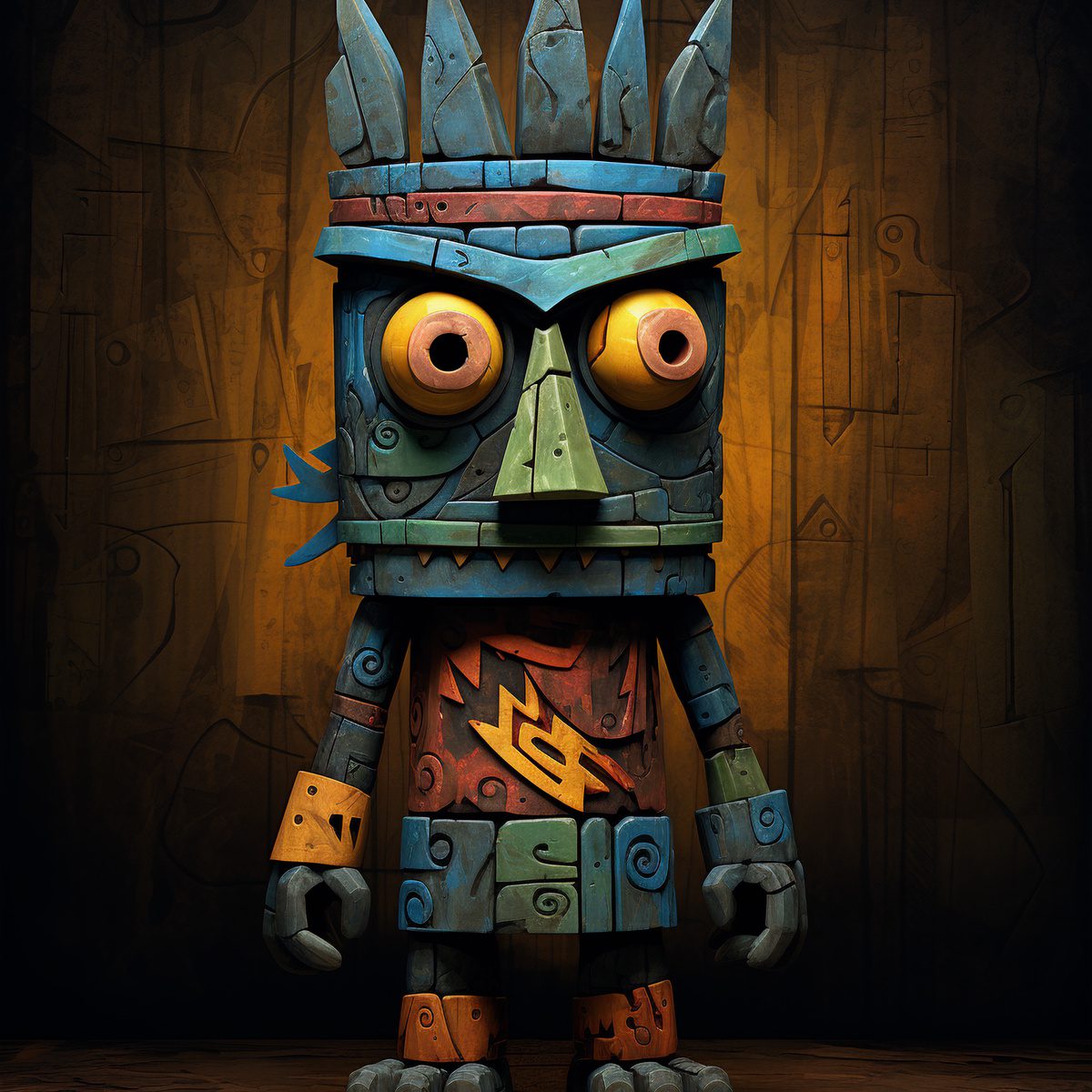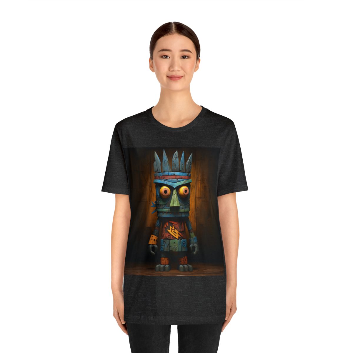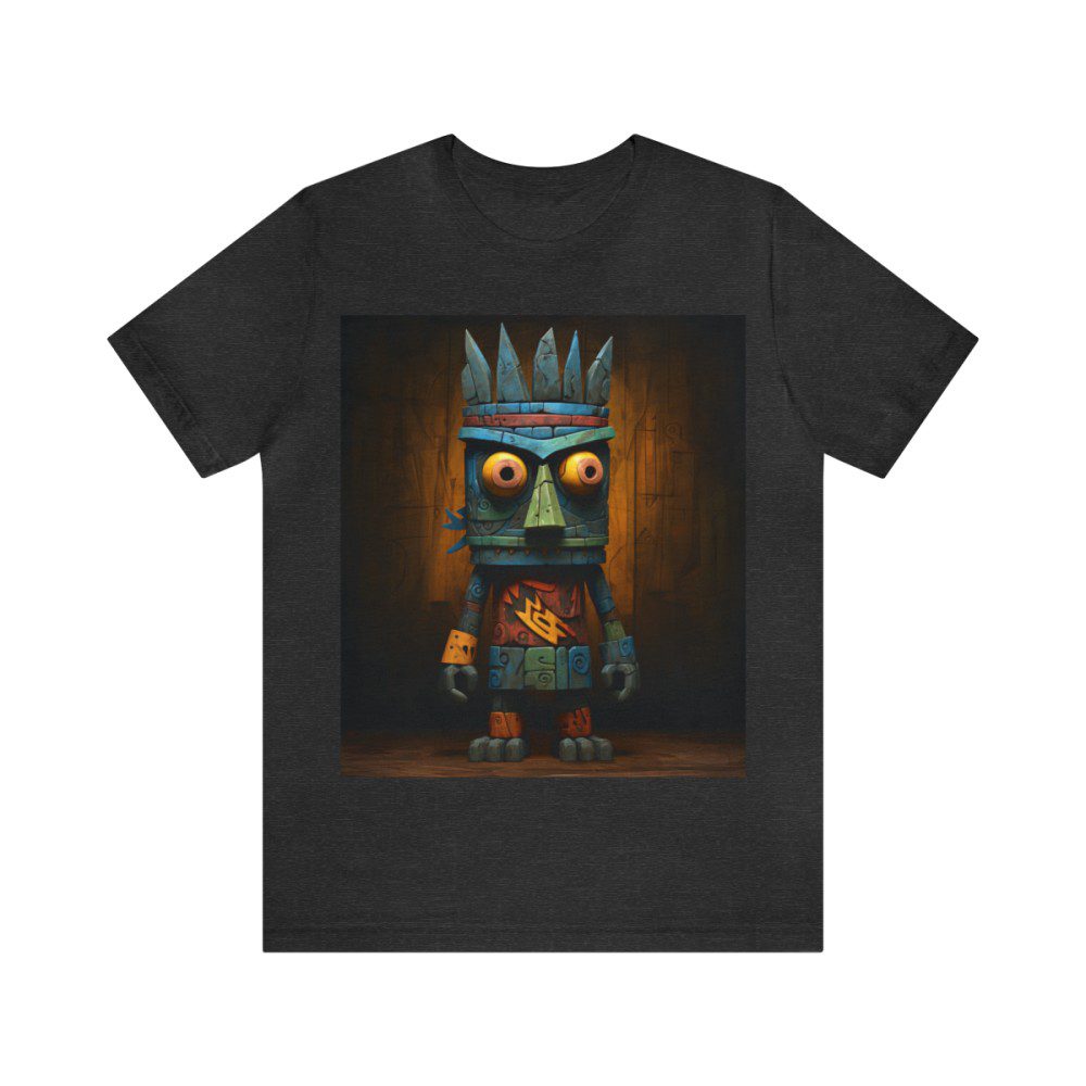 This wide-eyed tiki man will boom-shaka-laka his way into your heart by appearing on your chest. He definitely can’t hide at night with his bright neon colors.
