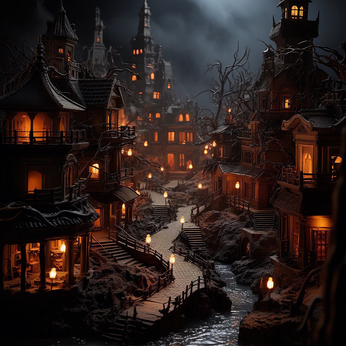 A quaint, creekside village awaits in miniature to transport you away from your day-to-day to a world of your own making. Cute pole lights and lanterns illuminate the village as inns and residences invite visitors alongside the path.