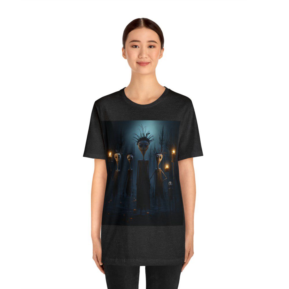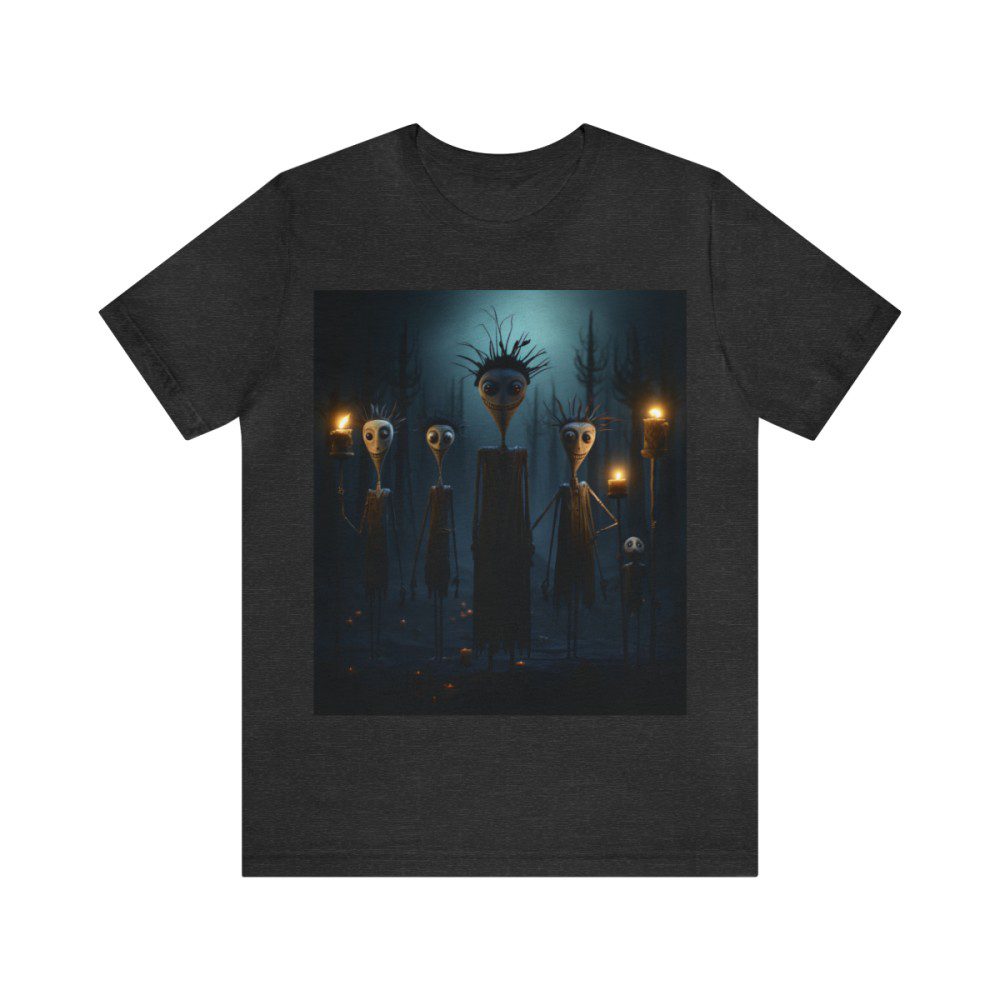 Wild hair, bulbous heads, wide eyes, and grinning faces. This family of super skinny teardrop heads is ready to head out on the town for a night of spooky revelry!