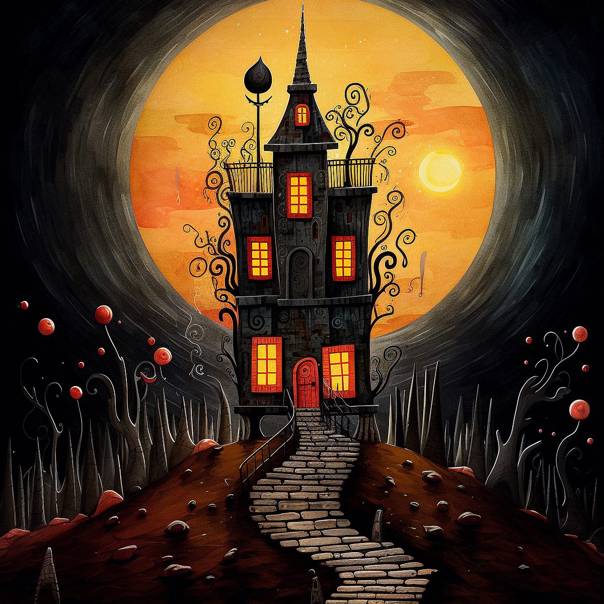 High atop a hill, deep within the forest, lies the house of an eccentric old lady who many believe to be a witch. Her tall, whimsical house sits at the end of a stone path, eager to welcome visitors with a trick or treat.